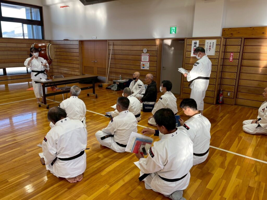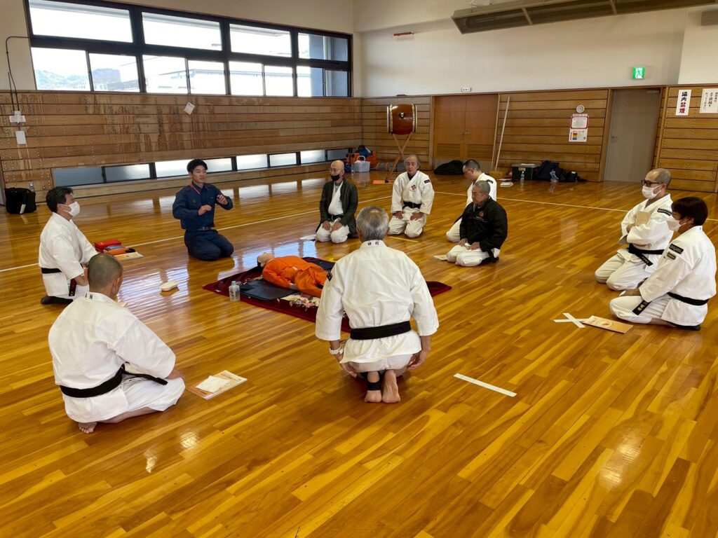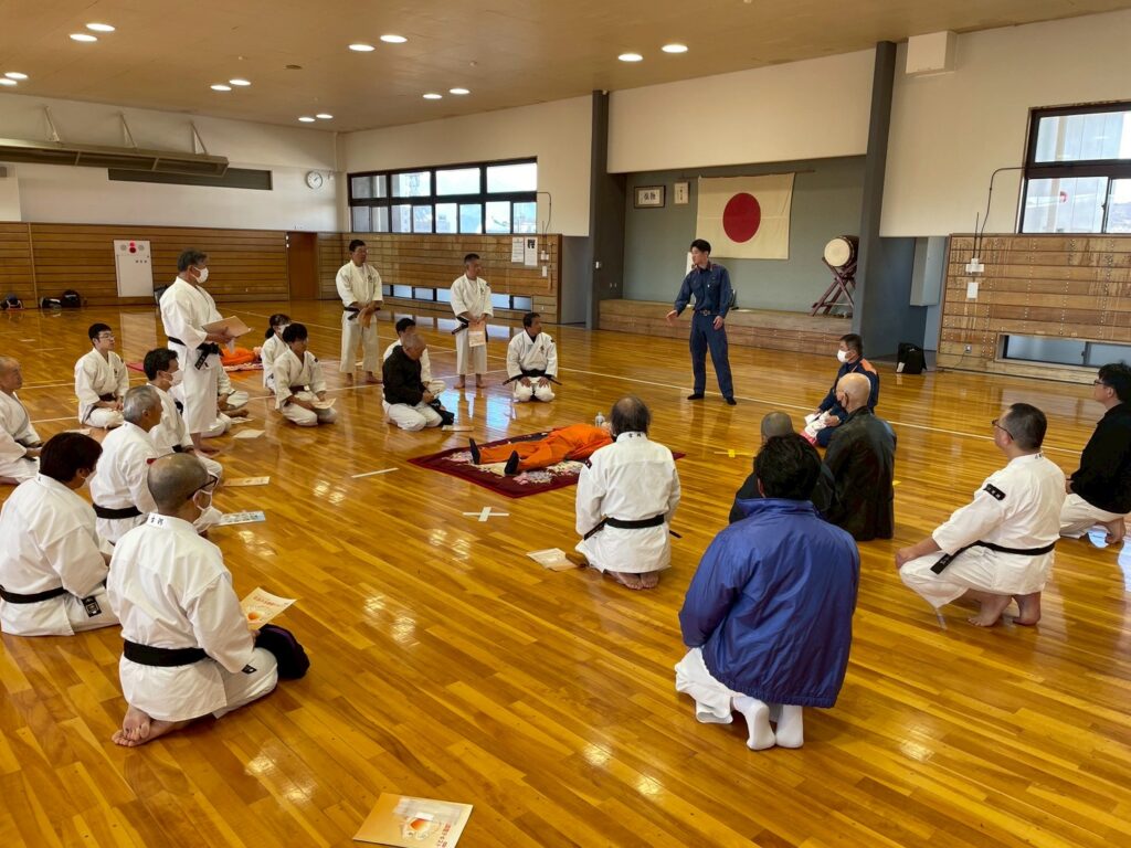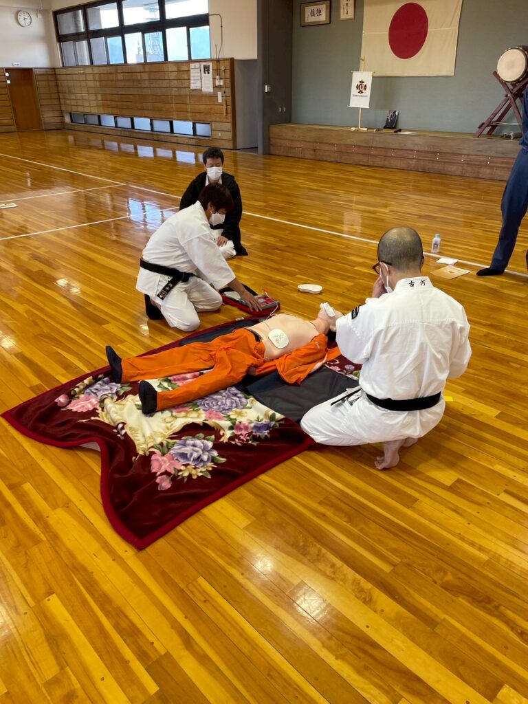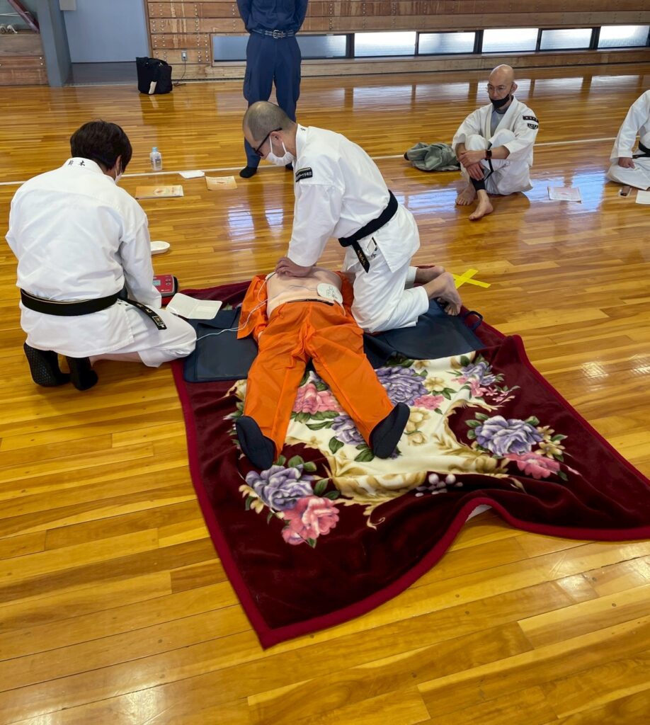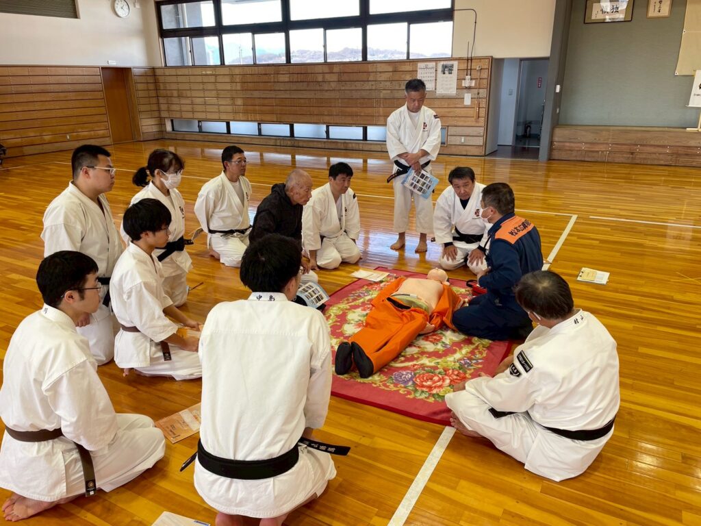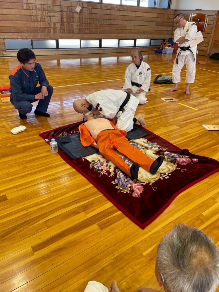 強化拳士練習、昇級、昇格試験も行われ、午後からは地元消防署に依頼しての救急救命講習会、ショートコーチング講座と中身の濃い1日でした。